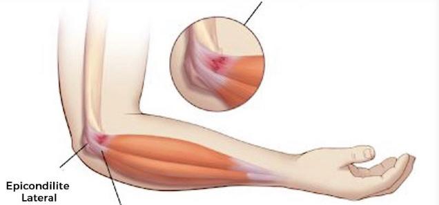 A epicondilite lateral (cotovelo do tenista) é uma inflamação dos tendões dos músculos do cotovelo. Causada pelo esforço repetitivo destes músculos, é mais comum a partir dos 30 anos de idade, nos trabalhadores que realizam movimentos repetitivos (digitar, escrever ou desenhar). Os sintomas de epicondilite lateral podem surgir sem causa aparente, de forma gradual e incluem: Dor no cotovelo, localizada mais especificamente na parte mais externa, podendo irradiar para o antebraço e diminuição da força no braço ou punho. Durante o tratamento, que incluem fisioterapia, massagem, estímulo elétrico dos músculos, remédios anti-inflamatórios, injeções de corticóide e até cirurgia em casos mais graves, é recomendado o repouso das atividades que desencadearam a dor.